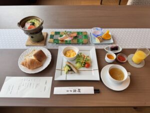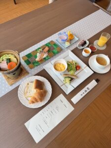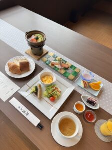Served in a refined Japanese setting, the breakfast features a well-balanced selection including bread,